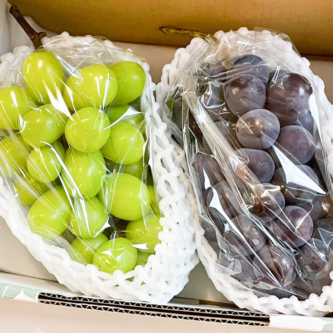 山梨県から大事に育てたシャインマスカットと黒系ぶどうのセットをお届けします。